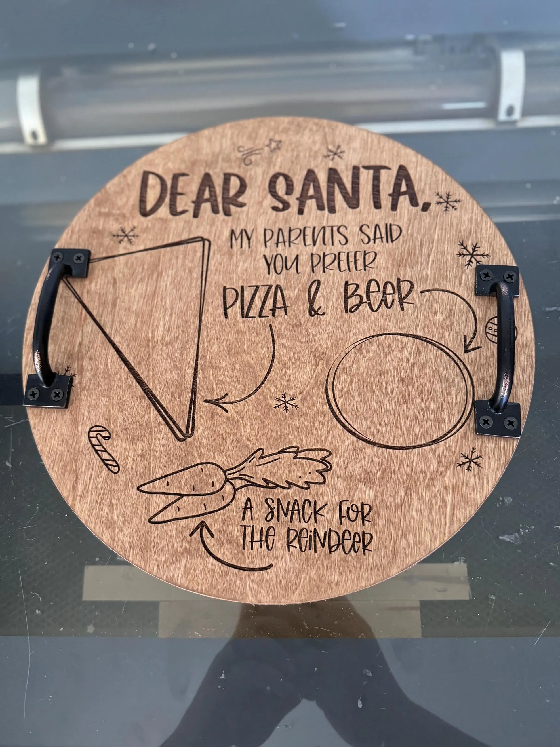 Santa's favorite treats have never been served in such style until now! The Santa Snack Tray offers a dual function - one side for his milk and cookies, the other for his beer and pizza. Say goodbye to boring old plates, and hello to a fun and quirky way to show Santa some love.